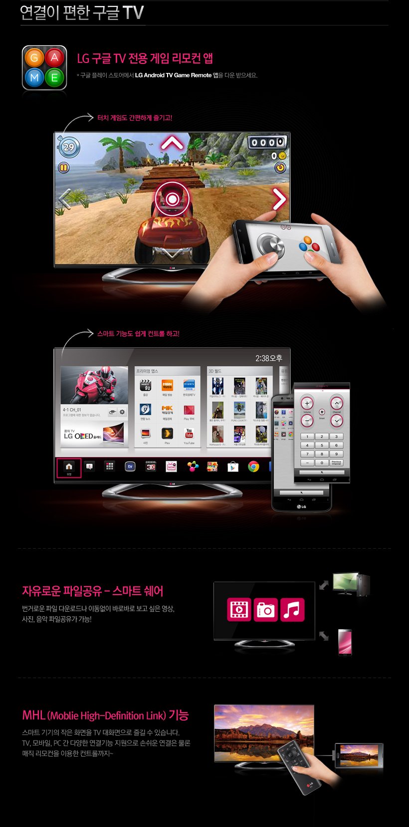 * 태그온 라이트 : 모바일 내 스마트 쉐어와 LG 구글 TV 전용 게임 리모트 앱을 자동으로 불러주는 기능
